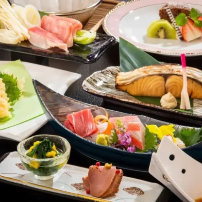 お食事は旬の味覚を少量ずつ丁寧に仕立てた美味少量会席。